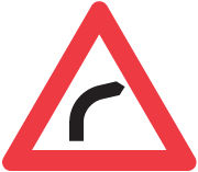 Left bend. The sign indicates dangerous bends in the road. Where the sign is used to warn about more than two bends, the length of the stretch or the number of bends is indicated on the plate below the sign.